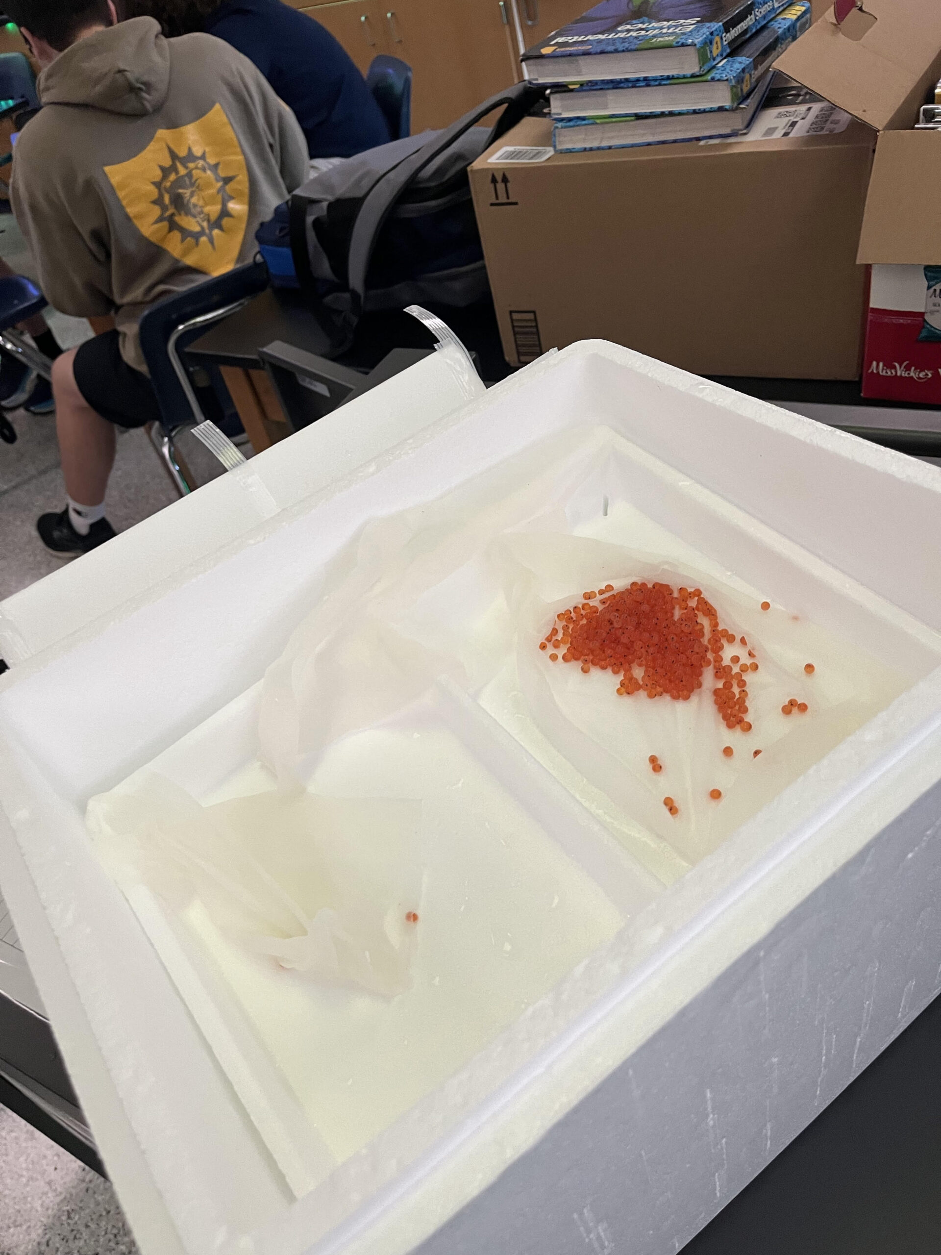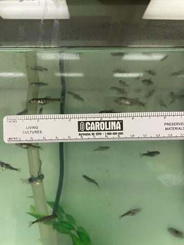 Some trout never learn to feed and will die. These non-feeding fish are called “pinheads” (big heads, skinny bodies). These trout should be removed. They will not develop. Most TIC classrooms see a mortality spike due to pinheads. It is quite normal.